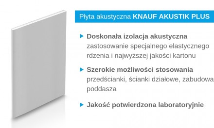 Przykładem poprawy izolacyjności akustycznej ściany o grubości 250 mm i średniej masie 365 kg/m2, wykonanej z dostępnych na polskim rynku materiałów, o izolacyjności akustycznej na poziomie 58 dB może być przedścianka wykonana z profili CW50 z podwójnym płytowaniem 2x12,5 mm Knauf Akustik Plus. Szczelne jednostronne wykonanie takiej przegrody może skutkować poprawą izolacyjności nawet o 10 dB. Wykonanie przedścianki z dwóch stron problematycznej ściany może skutkować poprawą izolacji akustycznej o dodatkowe 5 dB.